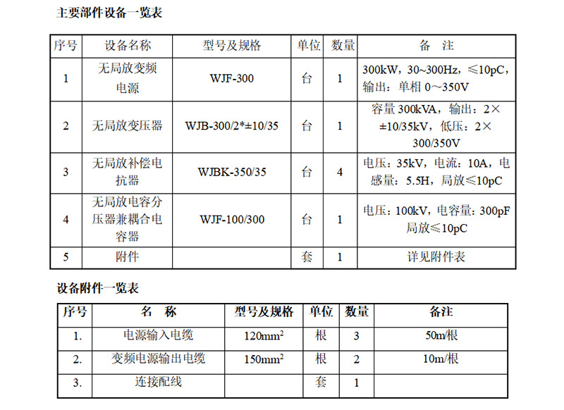 (1)設(shè)備型號及名稱: WJF-300kW無局放感應(yīng)耐壓試驗(yàn)裝置
