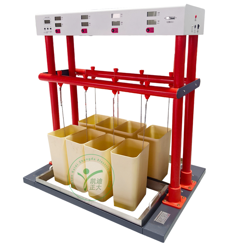 KDJS-8絕緣手套耐壓試驗裝置是絕緣靴(手套)批量試驗的專用設備,有效地解決了以往不規則的測試方法,簡化了測試程序,提高了檢測速度,減輕了檢測強度,保障了檢測人員的安全,可靠地鑒別絕緣手套(靴)的泄漏電流,絕緣老化和工頻耐壓等參數,可同時檢測六只絕緣手套(靴)。
