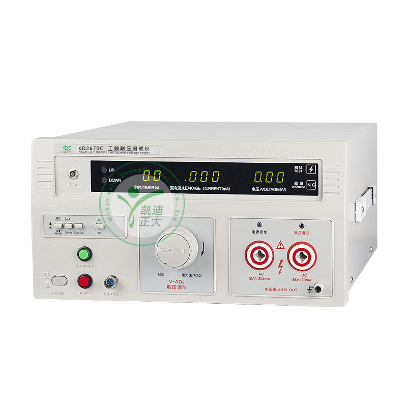 KD2670C工頻耐壓試儀是通用型的高壓測試儀器,廣泛用于電工器材、膠木電器、變壓器、電源線、電能表、電機、電源插頭座、電纜線等的耐壓測試,以及各種電子電氣產(chǎn)品的耐壓測試。