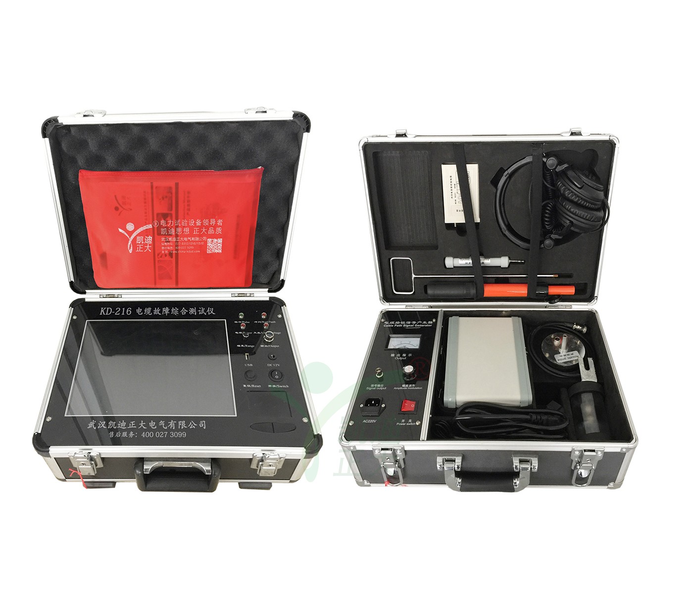 KD-216電纜故障測試儀是由KD-216路徑信號發生器、KD-216路徑定位接受機、感應式探頭、電位差式探測架等組成。電纜尋跡及故障定位儀是光纜、電纜故障定位測試的專用儀表,適用測試對象為具有金屬導體(線對、護層、屏蔽層)的各種光纜、電纜。其主要功能為對地絕緣不良點的定位測試,線纜路徑的探測以及線纜埋深的測試。有線通信的暢通和電力的輸送有賴于電纜線路的正常運行。