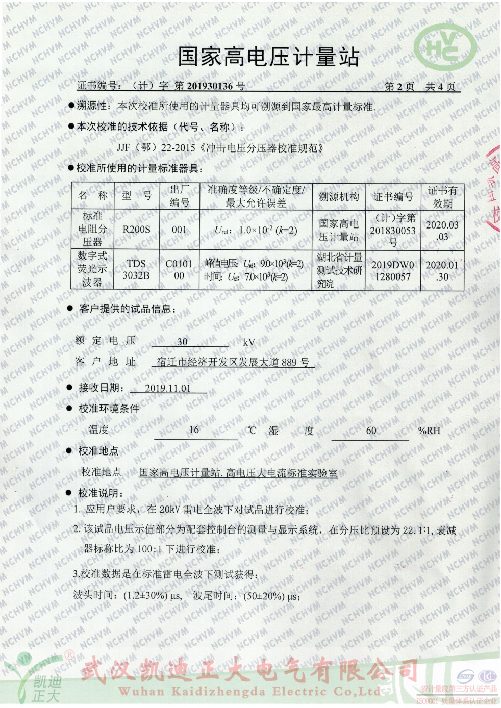 國家高電壓計量站校準證書-雷電沖擊電壓發生器