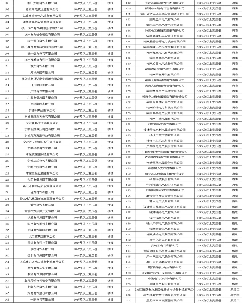 附各省市電力公司符合此次核實(shí)標(biāo)準(zhǔn)的變壓器企業(yè)名單: