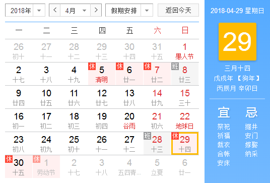2018年五一放假安排時間表最新國務院官方發布: 429日(星期天)至51日(勞動節,星期二)放假調休,共3天。 友情提示:428日(星期六)上班。