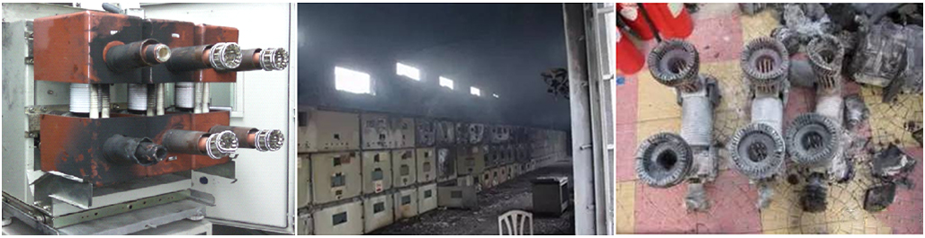 由于開關(guān)柜母線室是連通的,當(dāng)一個(gè)間隔故障時(shí),電弧侵犯臨柜,往往造成“火燒連營” 事故,致使多面開關(guān)柜燒毀。