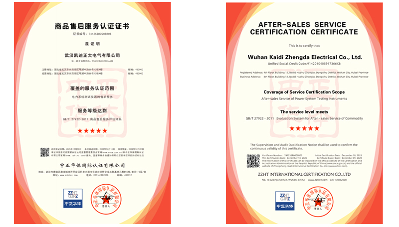 商品售后服務(wù)認(rèn)證針對“電力系統(tǒng)測試儀器的售后服務(wù)”,并榮獲 五星級 最高評價,這直接證明了公司在售后服務(wù)領(lǐng)域擁有規(guī)范、高效、客戶至上的服務(wù)體系,客戶滿意度和品牌信譽獲得了國家級標(biāo)準(zhǔn)的認(rèn)可。